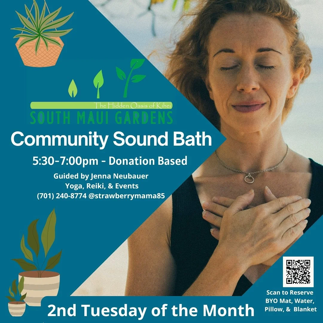 Join Jenna for a Community Sound Bath on the 2nd Tuesday of the month from 5:30 PM - 7:00 PM. Please support your experience with a yoga mat and water. Suggested donation $15-$30.
